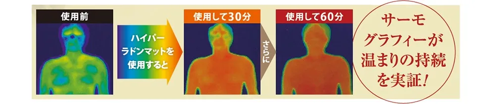 筋肉は体の体温を産生する非常に重要な役割を果たしていますが、女性は男性に比べ筋量が少ないです。冷えを感じる女性が多いのはこのためです。冷え症に悩む方には、ハイパーラドンマットを使用することで冷えを解消する効果も期待できます。
